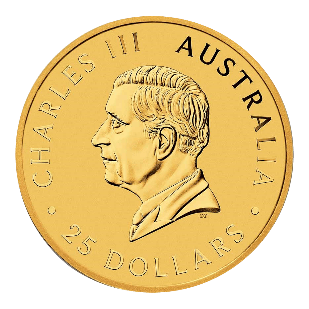 Op de achterzijde van de Kangaroo staat een portret van koning Charles III. Dit portret is een belangrijk onderdeel van de Kangaroo. Ook vind je op deze zijde van de munt de nominale waarde van 25 Australische dollar.
