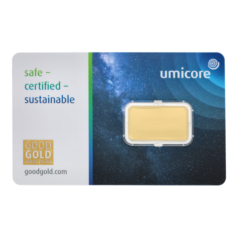 De gecertificeerde goudstaaf van 2,5 gram die Goudwisselkantoor levert, is van het merk Umicore. Umicore levert London Bullion Market Association (LBMA) gecertificeerde baren. Deze zijn wereldwijd erkend, betrouwbaar en voldoen aan de hoge kwaliteitseisen. Deze goudbaren zijn voorzien van een keurmerk waardoor ze makkelijk te controleren zijn. Op dit keurmerk staat onder andere het gewicht en de zuiverheid van de goudstaaf vermeld. Vaak wordt ook de producent en soms zelfs het serienummer op de goudstaaf vermeldt.
