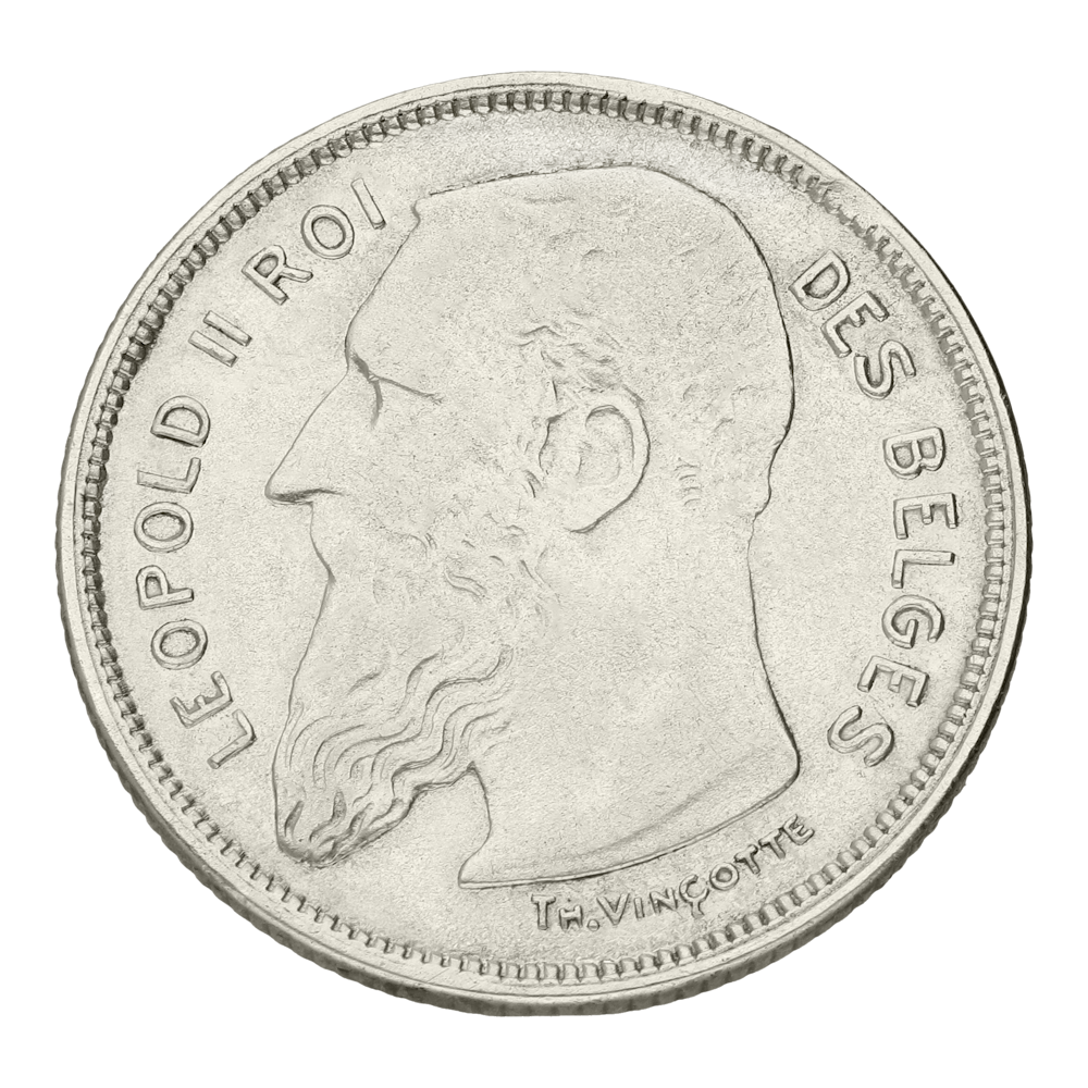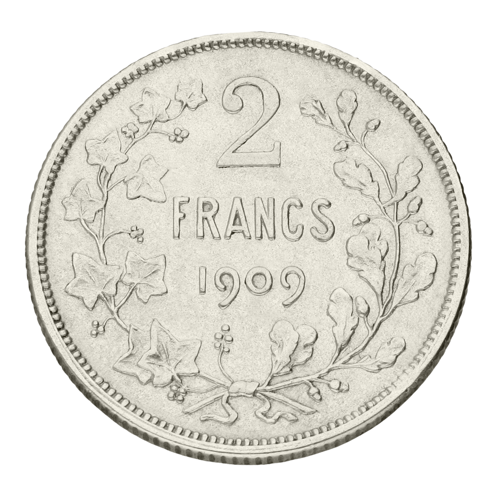 In een tijd waarin België haar industriële voorsprong verstevigde en haar internationale positie uitbreidde, regeerde koning Léopold II (1865-1909). Onder zijn bewind werden steden uitgebreid, havens uitgebouwd en infrastructuur aangelegd, wat het land een modern gezicht gaf. Tegelijkertijd markeerde deze periode het einde van de 19e en het begin van de 20e eeuw: de wereld veranderde snel, technologie nam toe en België stond middenin het geopolitieke toneel. De 2 Francs-munt, geslagen tussen1904 en 1909, symboliseert die overgang: traditie én vooruitgang verenigd in één stuk zilver.