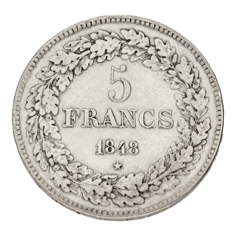 De 5 Francs Léopold I werd geslagen tussen 1832 en 1849, in het vroege bewind van koning Léopold I (1831 1865). Het was een periode waarin België zich langzaam vestigde als een stabiel koninkrijk: politieke rust keerde terug, infrastructuur werd aangelegd en de economie begon zich te ontwikkelen. Deze munt symboliseerde vertrouwen in de nieuwe muntcirculatie en verbeeldde de trots van een jonge natie. Met zijn sobere maar waardige uitstraling is het een stille getuige van het begin van de Belgische monarchie en de eerste stappen richting nationale welvaart.