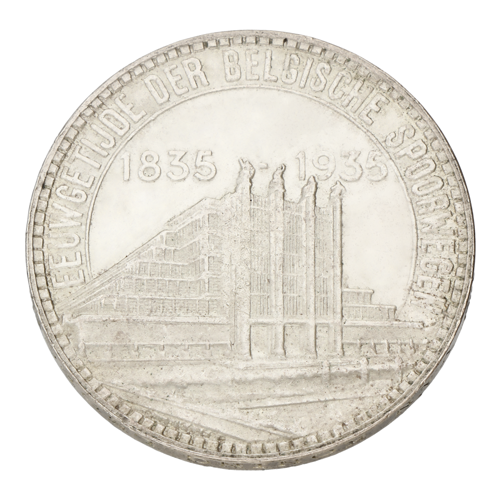 In 1935 werden de ogen van de wereld gericht op Brussel: de Wereldtentoonstelling bood een podium aan innovatie, industrie en cultuur. Onder het bewind van koning Léopold III stond België midden in deze tijd van optimisme en verandering. Tegelijk werd het 100-jarig bestaan van de Belgische spoorwegen gevierd — een symbool van vooruitgang en verbinding. De munt markeert dus twee mijlpalen in één design: koninklijk en nationaal streven gekoppeld aan mobiliteit en moderniteit.