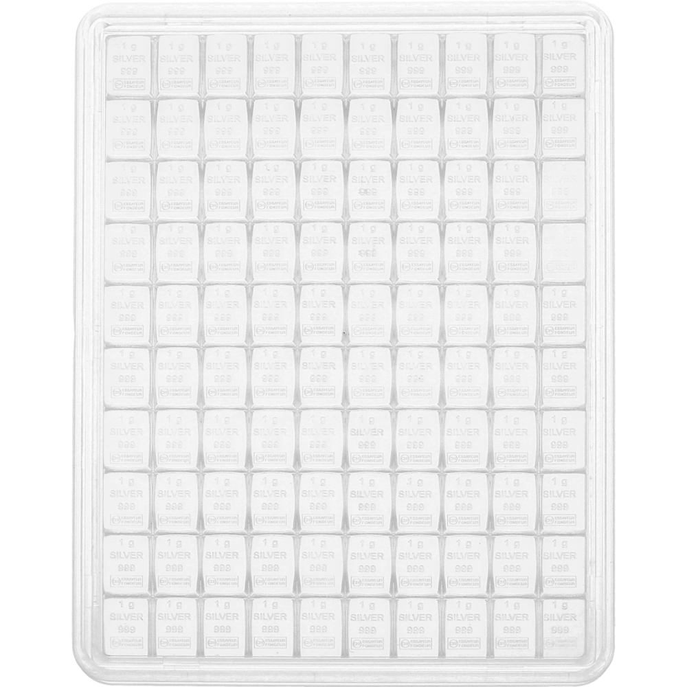 Wil je de Valcambi CombiBar met 100 zilverbaren van 1 gram kopen? Dan ben je bij Goudwisselkantoor aan het juiste adres. De Valcambi CombiBar bevat 100 zilverbaartjes van 1 gram zilver.